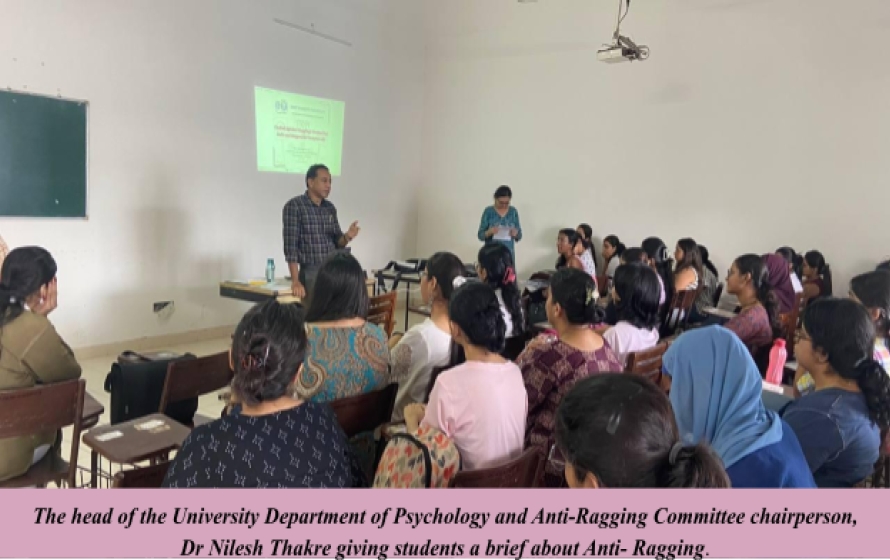 The session was conducted by the Department of Psychology faculty members as a means to open dialogue about anti-ragging and the university’s policies on the same. The session was honored with the presence of the Anti-Ragging Committee Chairperson Dr. Nilesh Thakre, and Co-Chairperson Mrs. Chaitri Dave along with the Committee members – Ms. Durgesh Badsewal, Ms. Tasmiya Kazi, Ms. Takreem Malick, and Ms. Akshata Joshi. The session received great response with a total of 141 students in attendance belonging to MA Psychology Part I & II.