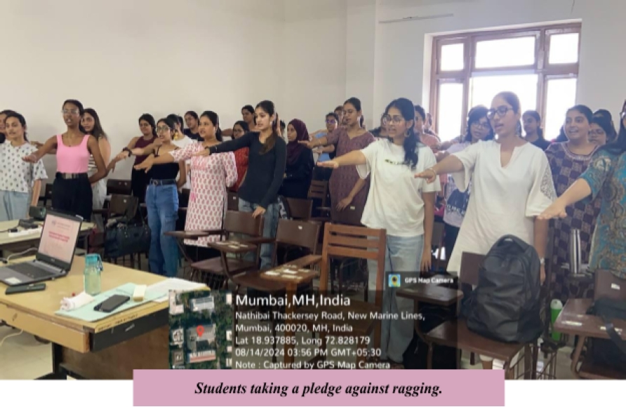 Marking a significant point in the event, all students united together and took a pledge to not engage in ragging. As the event concluded, Ms. Akshata Joshi gave a vote of thanks to the faculty members as well as students who contributed to the success of this event.