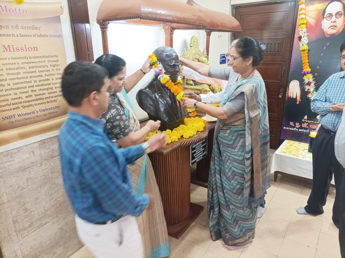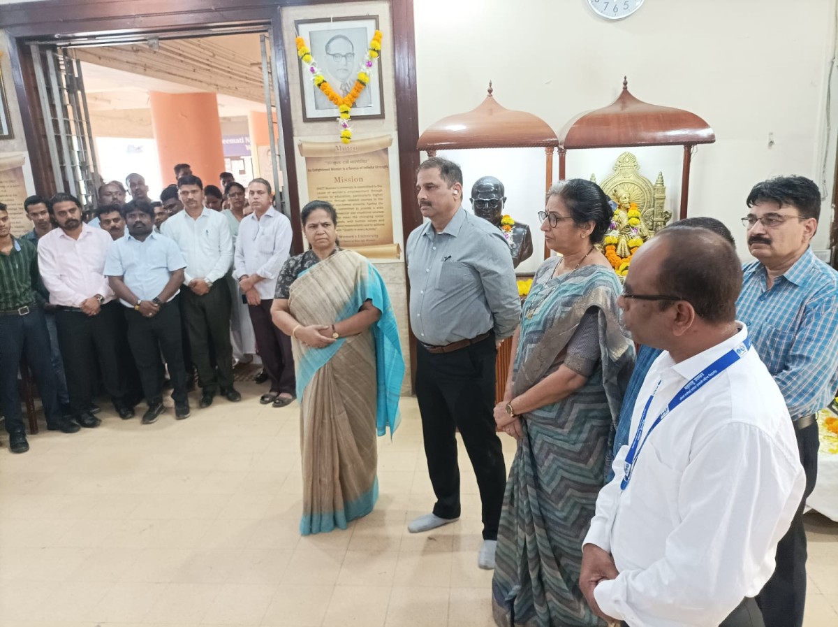 एसएनडीटी महिला विद्यापीठाच्या चर्चगेट, जुहू आवारात महामानव डॉ. बाबासाहेब आंबेडकर यांना महापरिनिर्वाण दिनाच्या निमित्ताने सामूहिक आदरांजली वाहण्यात आली. या वेळी मा. कुलगुरू, मा.उप-कुलगुरू, मा. कुलसचिव व विद्यापीठाचे अधिकारी, शिक्षक, शिक्षकेत्तर कर्मचारी कार्यक्रमात उपस्थित होते.