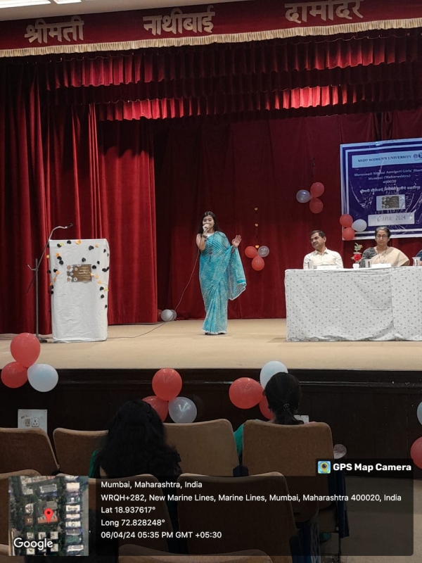 SNDT Women’s University Churchgate hostel celebrated Shuruwat 23 (Freshers) & Alvida 24 (Farewell) function on 6th April 2024 in Patkar Hall. This function was presided by Honorable Vice Chancellor Dr. Ujwala Chakradeo, Pro Vice Chancellor Dr. Ruby Ozha, Registrar Dr. Vilas Nandavadekar, Dr. Rajashree Patil. Students participated with full enthusiasm. Ms. Fresher and Ms. Farewell was crowned. Farewell party was also given to the employee retiring Mr. Baban. It was a happy moment to see students from 17 different colleges and stream participating and interacting during the function and working towards its success.